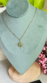 Blue Stone Sun Pendant Gold Plated Necklace