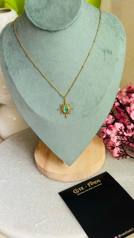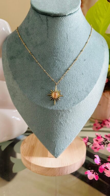 ink Stone Sun Pendant Gold Plated Necklace