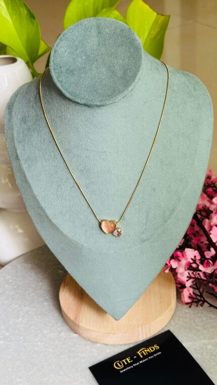 Pink Heart Gold Plated Necklace