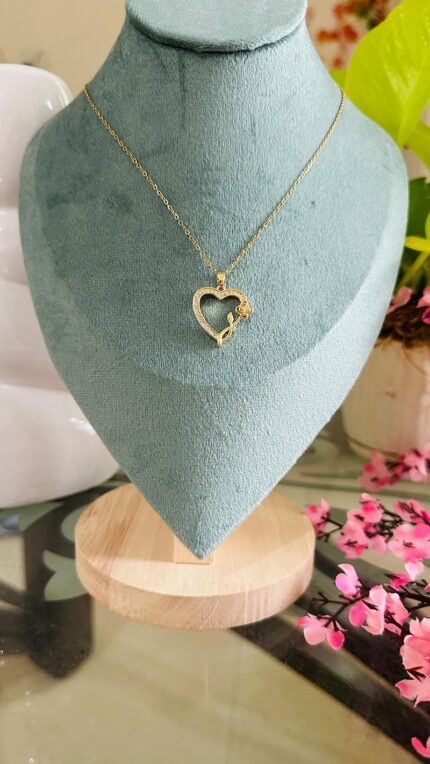 Floral Heart Pendant Gold Plated Necklace